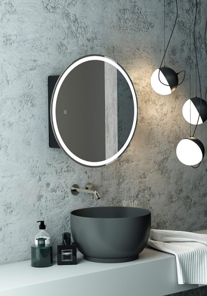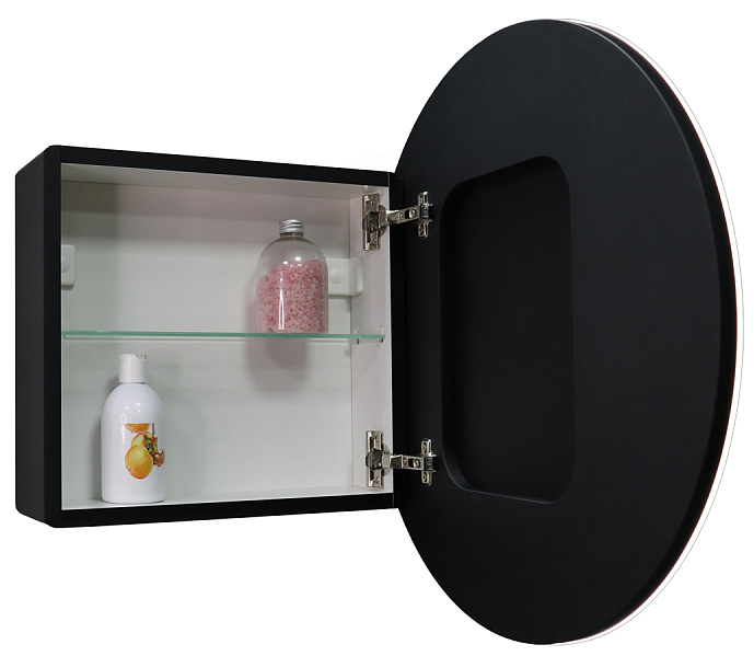 Зеркало-шкаф "Torneo Black LED" d 600 с подсветкойLED подсветка 6000К; сенсорный включатель с функцией димирования, материал корпуса- МДФ, цвет корпуса - черный, реверсивные крепления