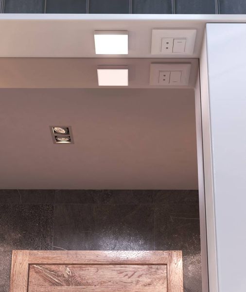светильник, включатель с розеткой.