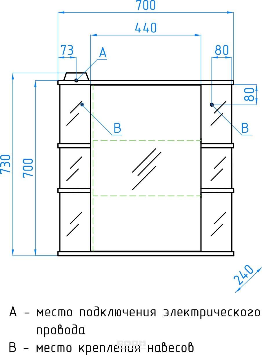 Зеркало-шкаф бренда "Style Line" коллекции "Лира 70/С" с высокоточной обработкой кромки фацетом и подсветкой. Фурнитура - хром. Кромка зеркала "Лира 70/С" зашлифована, что защищает от порезов. Лазерная гравировка фирменного логотипа. Край полочек имеет трапецевидную еврокромку. Эксклюзивный декор "Луино" - ламинация внутренней стороны изделия