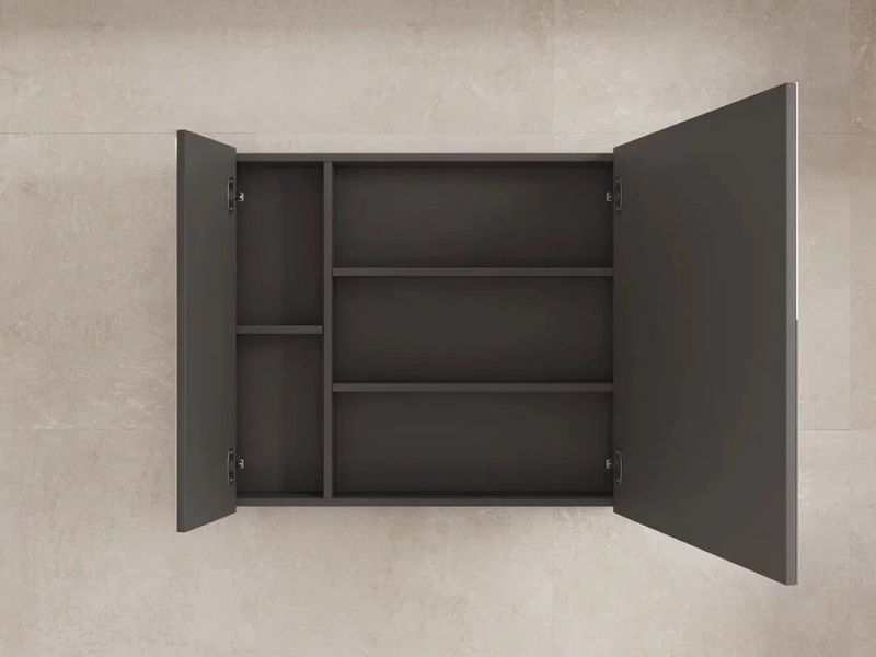 - Шкаф имеет ширину 80 см, что позволяет удобно разместить его в просторных ванных комнатах, сохраняя при этом максимально полезное пространство.